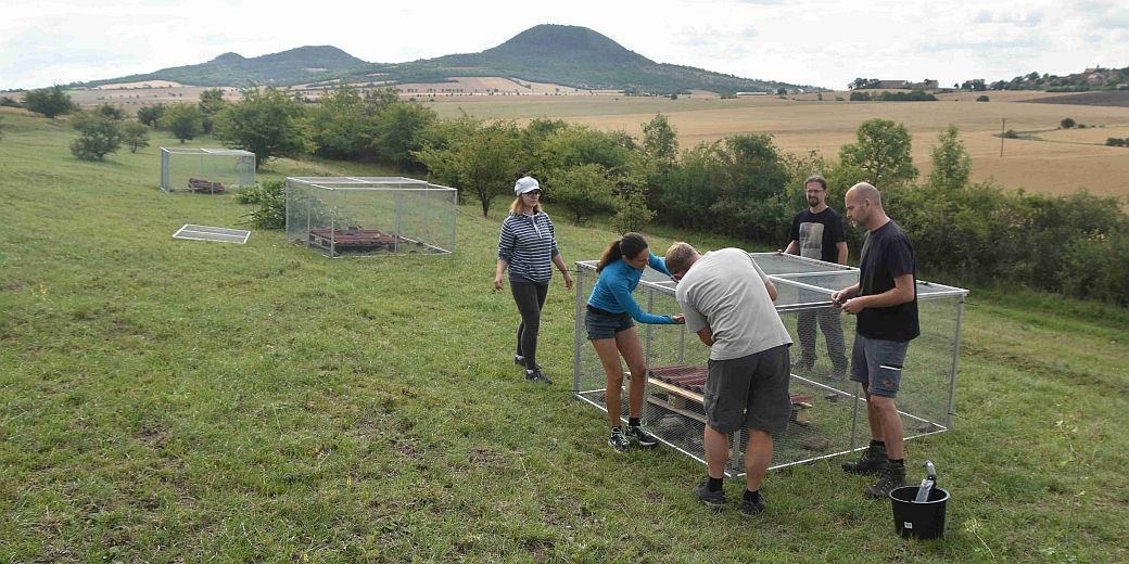 European Ground Squirrels were recently also released at the České středohoří Protected Landscape Area at Hliniště near Milá hill. This site is situated near other ground squirrel colonies (Hrádek airport, hills Raná and Písečný). We suspect that the squirrels could migrate among the colonies and thus support the "gene flow" that seems to be critical fo the long term survival and viability of the populations. The group of squirrels released at Hliniště originates from foreign zoological gardens: 13 ground squirels come from Zoo Opel and Norimberk Zoo, and 19 were imported from Swedish Nordens Ark Zoo.
