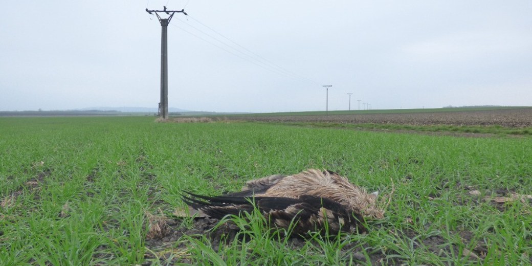Dead subadult od Imperial Eagle electrocuted on electricity pole near Brno. November 2022. Photo: David Horal